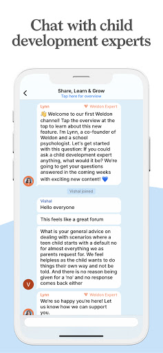"The Weldon App offers a variety of perspectives on parenting topics and the ability for parents to ask personal questions or connect to a coach in a non-judgmental community" - Beth Greenawalt, PCI Certified Parent Coach®