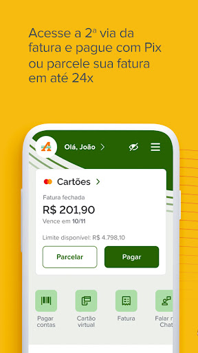 And in addition to paying in installments, advancing and paying the invoice, in the Atacadão credit card app, you can also request a loan and recharge your cell phone.