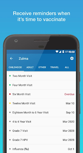 Receive reminders about upcoming vaccinations right to your home screen.