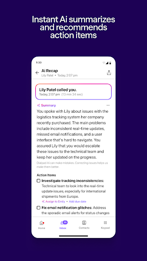 With Voice Intelligence™, calls are automatically transcribed and surfaced to you once you hang up, so you’re never second-guessing what was said.