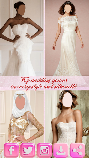 This awesome fashion app helps you to try some dresses and choose the best for you! Find your dream wedding dress in this lovely collection of beautiful wedding dresses! Try on wedding gowns in every style and silhouette. >>> Upload your photo from your phone's camera roll or simply use one of our many fit models as your stand-in and start selecting the wedding dresses you'd like to try on. As a final step, you can share photos of yourself in your favorite wedding dresses on social networks.