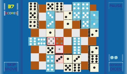 Before each move the player on the game field at random appear three dice faces coated with points 1 to 6. Move one dice to the other so that their points on the upper face were identical. You get points for it, but the cubes are frozen (inactive) at the same time and remain on the field. To release the entire field from the frozen cubes use the "DEFROST DICES" button.