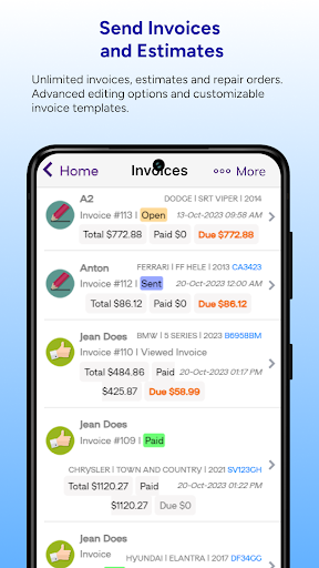 Keep track of all vehicle owners that passed through your shop. Generate billing statements, assign vehicles and create invoices and estimates for your clients instantly.