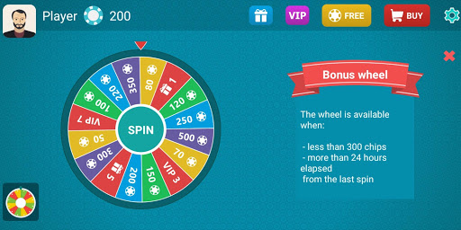 - In the absence of chips for the game, they can be replenished once a day by spinning the daily bonus wheel for free.