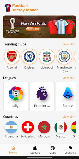 Football jersey maker app brings you the flexibility to choose between clubs from the leagues such as Laliga, Champions League, Bundesliga, Serie A, League 1. Moreover, all of the countries that are the part of FIFA world cup 2022 are listed and you can design jersey of your favorite country.