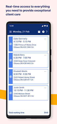 The AlayaCare Care Worker app makes it easy for care workers and nurses to access and track client health and fitness. Real-time scheduling, time tracking, charting and clinical documentation are all at your fingertips, so you can deliver exceptional health care.
