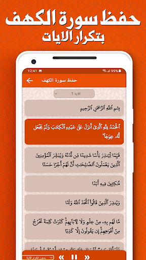 Through our application, you can listen to the image of the cave written in its entirety, as well as memorize Surah Kahf in audio without the net.
