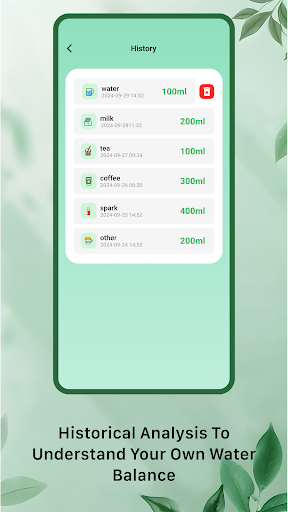 Personalized reminders: Set water drinking reminders according to your daily activities and physical needs to ensure that you are always hydrated.