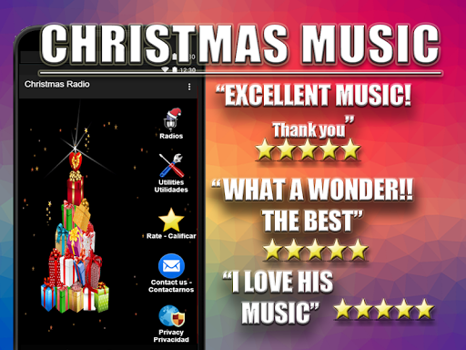 In this application there are many radio stations from different countries and different styles of Christmas music, Christmas carols and more ...
