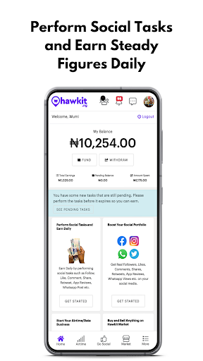 Hawkit is an ecommerce platform that allows you to earn everyday by simply performing popular and easy social tasks such as Following of Social Media Accounts, Liking of Social Media Posts, Commenting on Posts, Sharing of Posts, Subscribing to a channel, Posting of Adverts, App Reviews etc.