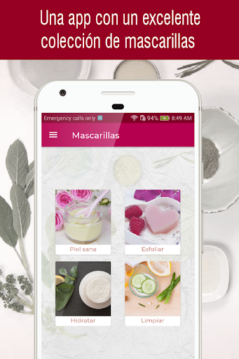 Download the application homemade face masks, beauty masks to take care of your skin, available right now on android mobile devices.