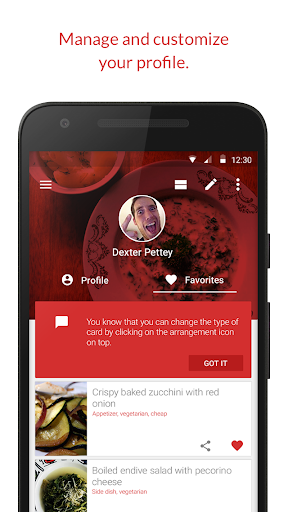 Create a personal profile and tell everyone what kind of chef you are! Save your favorite recipes and find them easily in your profile.