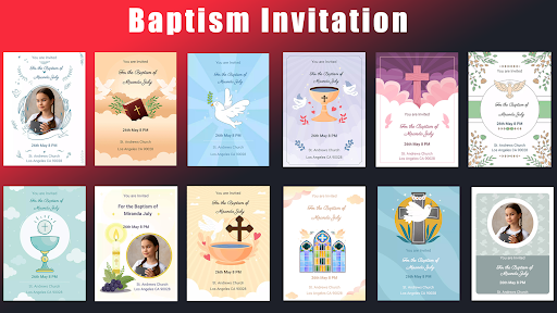 You can create Baptism Invitation Cards, Communion Invitation Cards and Confirmation Invitation Cards using our app for free. We have lots of beautiful templates.Our app is completely free for you to use.