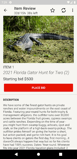 The best online auctions for hunting and fishing trips. With the SFW Auctions app, you can preview, watch and bid in our auctions from your mobile / tablet device. Participate in our sales while on-the-go and gain access to our following features: Quick Registration Following upcoming lots of interest Push notifications to ensure you engage on items of interest Track bidding history and activity Watch live auctions