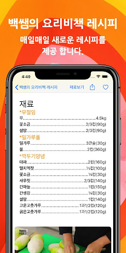 This app introduces golden recipes that can be easily cooked using familiar ingredients frequently encountered in everyday life. The recipes are simple yet informative so that you can make delicious dishes with ingredients that can be easily prepared at home. In addition, Baeksam's various cooking secrets introduced through the broadcast are also provided, creating dishes that can be easily followed even on special days.
