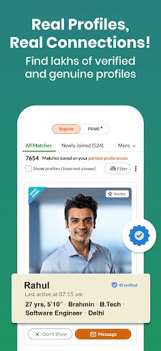 • Access BharatMatrimony “Prime”: Get genuine profiles that are government ID-verified.