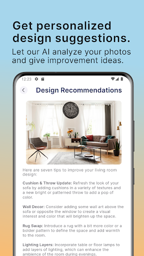 Elevate your space with bespoke design advice! RoomGenius can create personalized design improvement suggestions based on a photo of your room. RoomGenius now harnesses the power of AI to provide custom-tailored recommendations that align with your personal style and room's unique characteristics.