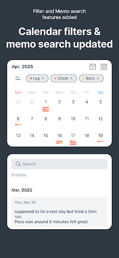 - Log sets, reps, and weights