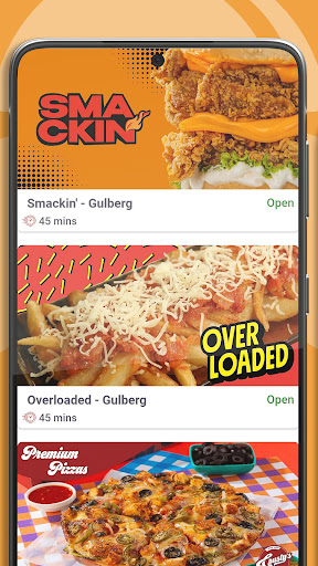 Smackin' (Burger and fried chicken), Crusty's (Pizza), Lazeez (Desi and local food, biryani), Just Wing It (Crispy and flavored wings), Overloaded (Loaded fries, pizza fries), Roller Toaster (Wraps, paratha rolls, shawarma), Burger Time (Anda shami, Chapli burger)