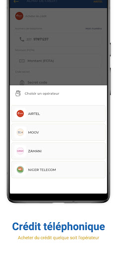 Purchase of telephone credit (Airtel, Zamani, Moov, NIGER TELECOM)