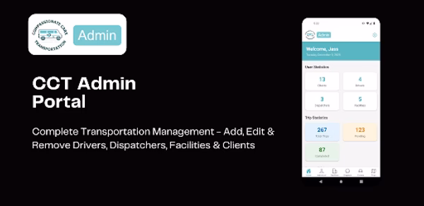 CCT Admin Portal is a comprehensive administration app for managing non-emergency medical transportation (NEMT) operations.