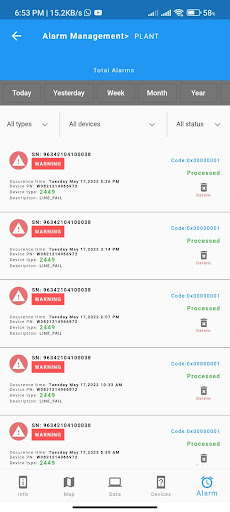 • Crown App immediately notify User when some Warning or Alarm occur in Inverter