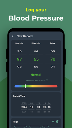 - Easy Logging: Quickly input your blood sugar and blood pressure readings. Every measurement can be saved with just a few taps.