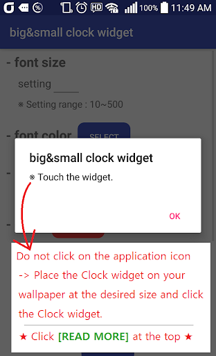 -> Press and hold on the wallpaper to place the clock widget at the desired size