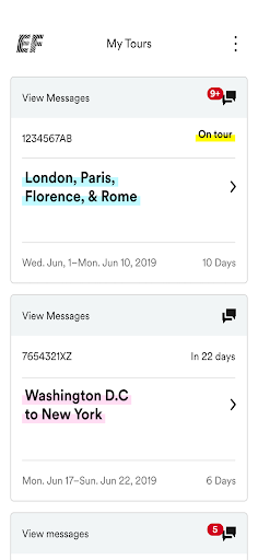 • View detailed itinerary information and receive updates specific to your tour(s)