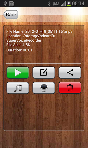 4.Easy to manage all the audio records. You could play, share, delete and view the detail of the records in a very easy way.