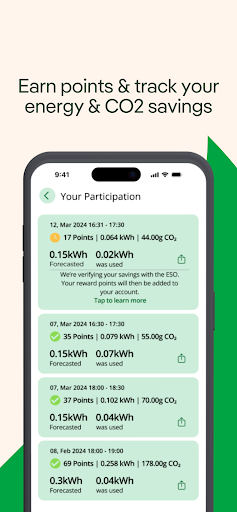 Earn points for reducing your energy usage during peak time saving events this winter. Lower your household’s carbon footprint by switching off when it matters most. Easily track your household's savings and CO2 impact from each event.
