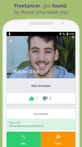 As a customer, you can find professional freelancers nearby, on the real-time maps, so you can chat with them or directly call them, and finally hopefully hire them. Placing a call in the app is free, but the call itself is subject to your regular phone company fees.