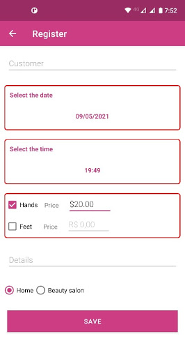 This nail tech app also allows the user to choose the location where the service will be performed, such as the salon or the customer's residence.