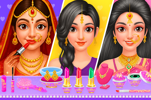 There are many rituals in a Indian Wedding Both can find the perfect dress and prepare for the Indian wedding marriage. wedding makeup salon Bridal looks like royal magical princess. Play the indian wedding game which allow to play with wedding.