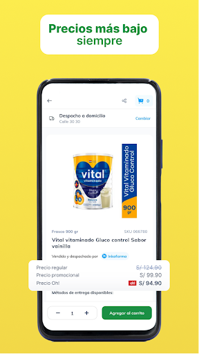 With Inkafarma Móvil you will no longer have to go to the pharmacy or drugstore to buy your medicines or personal care products, we have delivery available in various points of Lima, Arequipa, Trujillo and Chiclayo *.