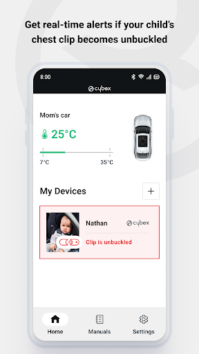The SENSORSAFE clip attached to the harness system, keeping you informed of the safety and health of your seated child at all times. CYBEX SENSORSAFE provides essential alerts to help prevent critical situations: when your child is left unattended in the car, if they unbuckle the clip themselves, when the ambient temperature of your vehicle is too hot or too cold, and if your little one has been seated for too long. All alerts are received via Bluetooth directly to your smartphone through this app that also provides guidance on installation, how-to videos, FAQs and more.