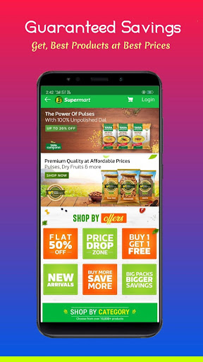 Supermart is India’s Best online Grocery/supermarket shopping app. Shop anytime, anywhere from a vast range of 10,000+ products at the best prices.Online Grocery Shopping for Super Quality and Super Savings!.we aim to cover almost all of your household needs.