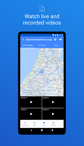 - Map mode. Access units, geofences, tracks, and event markers on the map, with the option to detect your own location.