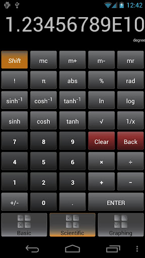 - buttons like ln, sqrt, log, 1/x, sinh, sinh-1, cosh, cosh-1, tanh, tanh-1