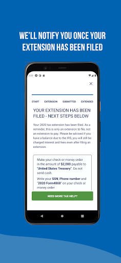 File tax extension with just a few clicks easily from any mobile device.