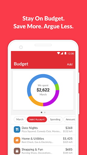 • Set monthly household spending limits on each category, and get notified when you and your partner are nearing it.