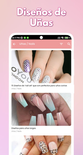 Get inspired by the thousands of nail design ideas that this app has for you, create new designs or simply copy the ones you like the most.