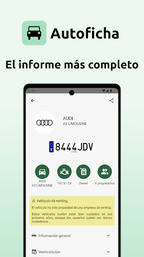 Autoficha provides you with all the relevant vehicle data, including the complete history of ownership, cancellations, transfers and registrations, all in a detailed and easy to understand report!