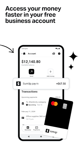 With a free SumUp Business Account, you can stay on top of your finances in one secure, easy-to-manage space. Sign-up is simple with zero paperwork, and you won’t be charged any monthly fees or hidden costs. You’ll also receive a free contactless Mastercard for your business expenses and track your spending in the app. You can pay with your card anywhere that takes Mastercard, or use it to withdraw cash from an ATM.