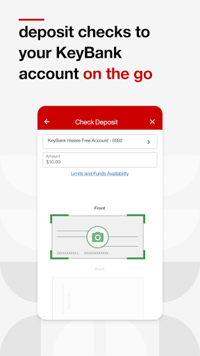 ● Deposit checks right from your mobile device without having to visit a KeyBank branch or ATM