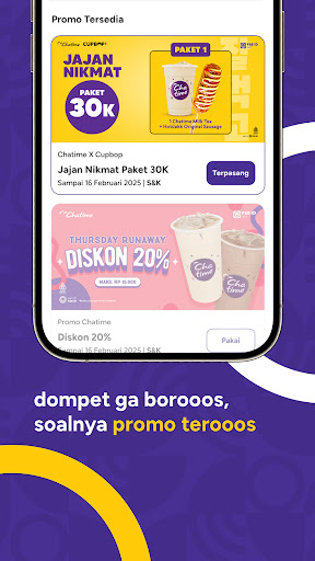 Lebih praktis pesan Chatime, Chatime Atealier, Cupbop, Gindaco dan Go! Go! CURRY - Genki no Minamoto lewat aplikasi.