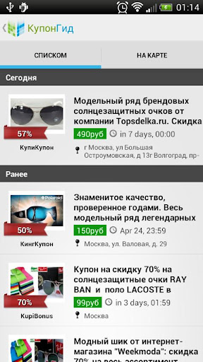 Application from the largest aggregator of daily deals KuponGid (http://www.kupongid.com/), which has more than 2 000 000 people registered.