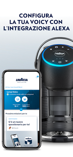 Download the new Lavazza Piacere App, sign up or log in with your credentials and immediately start collecting beans to participate in the Lavazza Piacere Collection. In addition, you can configure your Voicy thanks to the integration with Alexa.