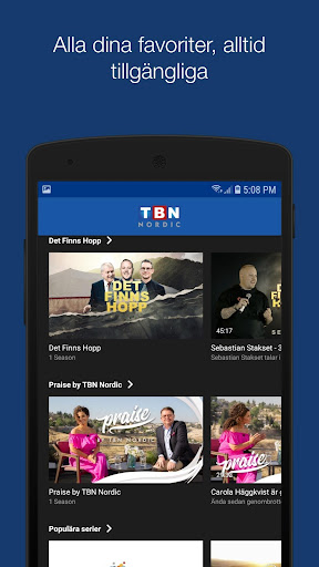 TBN Nordic is a free streaming service with high quality Christian content. Series, films and programs adapted for a Nordic audience, with self-produced content as well as exclusive productions from TBN in the USA (the world's largest Christian TV network).