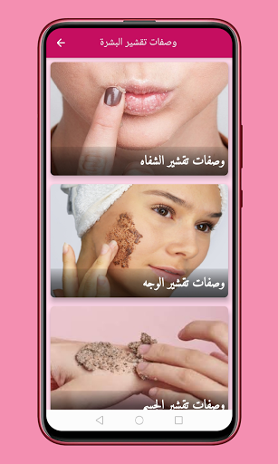 The application offers in your hands a selection of natural exfoliation recipes to get smooth lips, a flawless face, and a smooth and tight body.